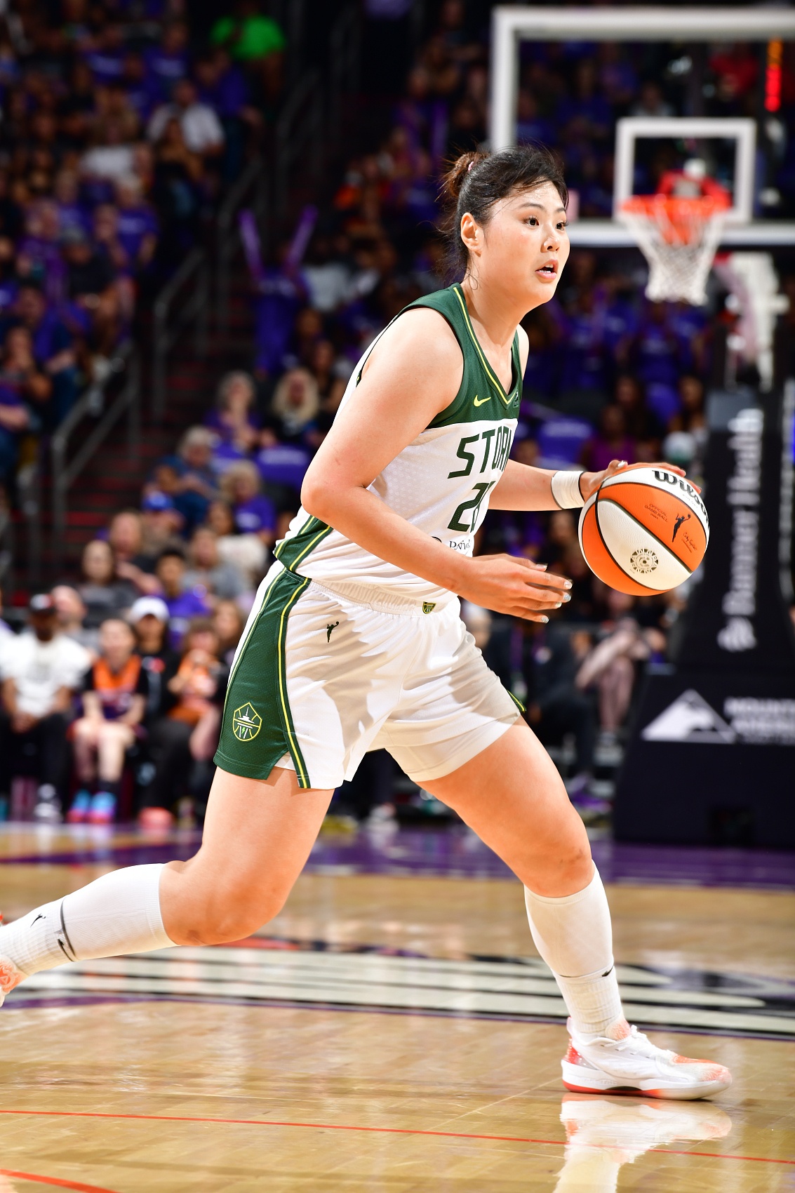 今年6月25日,李月汝迎来了在飞翼的首次首发,而且打出高光表现,登场34分04秒(创个人WNBA生涯纪录,此前是30分50秒),9投4中,三分1中0,罚球2中2,砍下10分15篮板(6个前场板)1助攻1抢断,正负值+18全场最高。