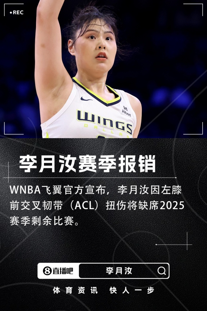 飞翼今天官方宣布,李月汝因左膝前交叉韧带(ACL)扭伤将缺席2025赛季剩余比赛.